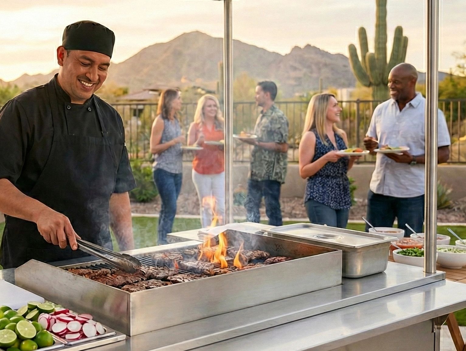 Professional Taqueros Grilling Live at Your Event. Serving Phoenix, Scottsdale & The Entire Valley. Fully Insured & Health Dept Certified.